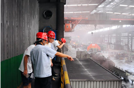 同學(xué)們在一邊參觀,一邊通過師傅現(xiàn)場講解,才真正了解到軋鋼的工藝流程并且知道了鋼板到底是怎么形成的。赤紅而超高溫的鋼板在生產(chǎn)線上快速運(yùn)行,最后被切割成一段一段的,經(jīng)冷水冷卻后,這些基本板材,有的進(jìn)入軋機(jī)進(jìn)行軋制后做成鋼材卷板。當(dāng)天,在高溫又環(huán)境惡劣的再熱軋現(xiàn)場中,令人有種“蒸桑拿”的錯(cuò)覺。雖然大家早已汗流浹背,但即便如此,同學(xué)們?nèi)允潜3志?,認(rèn)真聆聽師傅的講解。當(dāng)大學(xué)生們親眼目睹一道道工序的順利進(jìn)行,直到鋼材一批批的成型,不由發(fā)出陣陣掌聲,既為工人師傅的精湛工藝和吃苦精神所感染,更深刻地體會到制造企業(yè)為社會主義生產(chǎn)力作出的貢獻(xiàn)。