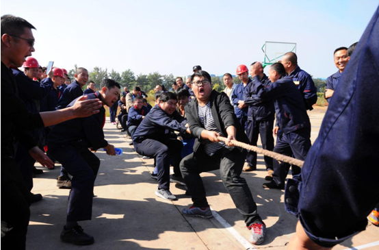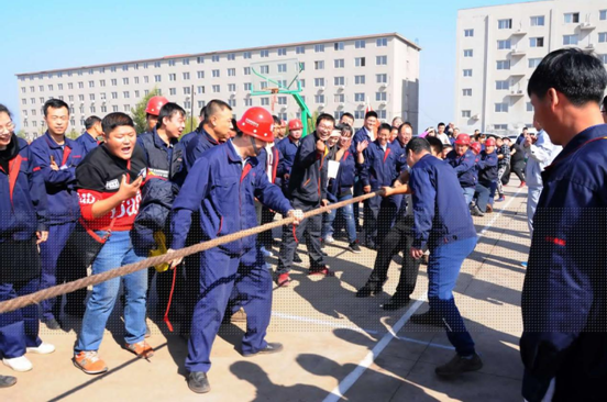 比賽場地設(shè)在辦公樓門前停車場。由各車間為單位,組成的12支代表隊參加了比賽,其中男隊8支女隊4支。比賽采用三局二勝制淘汰賽,每隊參賽人員 10人,按抽簽分組決定比賽順序。參賽隊員們個個摩拳擦掌、士氣高昂,隨著裁判員一聲哨響,比賽正式開始。隊與隊之間是一場力量和技術(shù)的較量,上場的兩支參賽隊伍緊握拔河繩,心往一處想,勁往一處使,拼勁全力,展開了實力拉鋸戰(zhàn)。賽場下,啦啦隊員們?yōu)樽约褐С值年犖榧佑凸膭?,助威聲一浪高過一浪。隊員們在賽場上的精彩表現(xiàn)搏得了現(xiàn)場觀眾的陣陣歡呼,號子聲、吶喊聲,此起彼伏,高潮迭起,氣氛熱烈。
