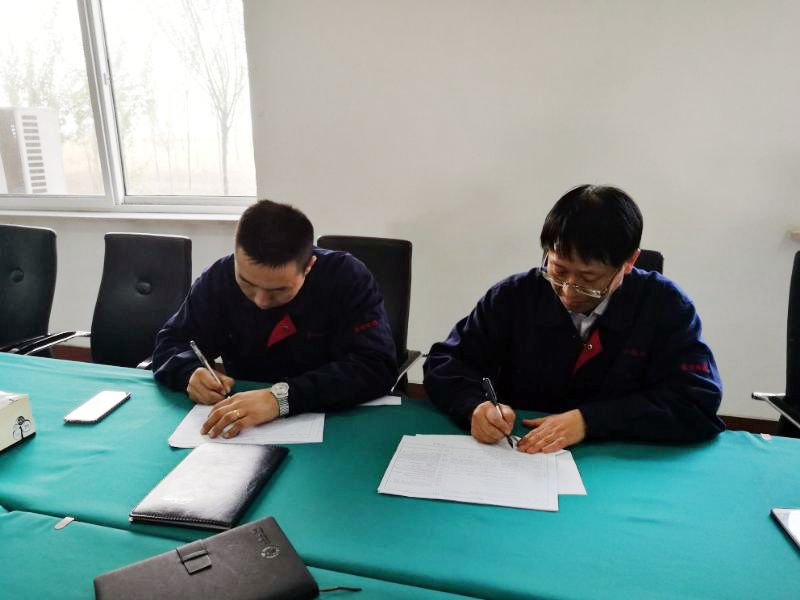 企管部部長張志強(qiáng)宣解方案并代表公司與各廠廠長在經(jīng)濟(jì)責(zé)任制上簽字。