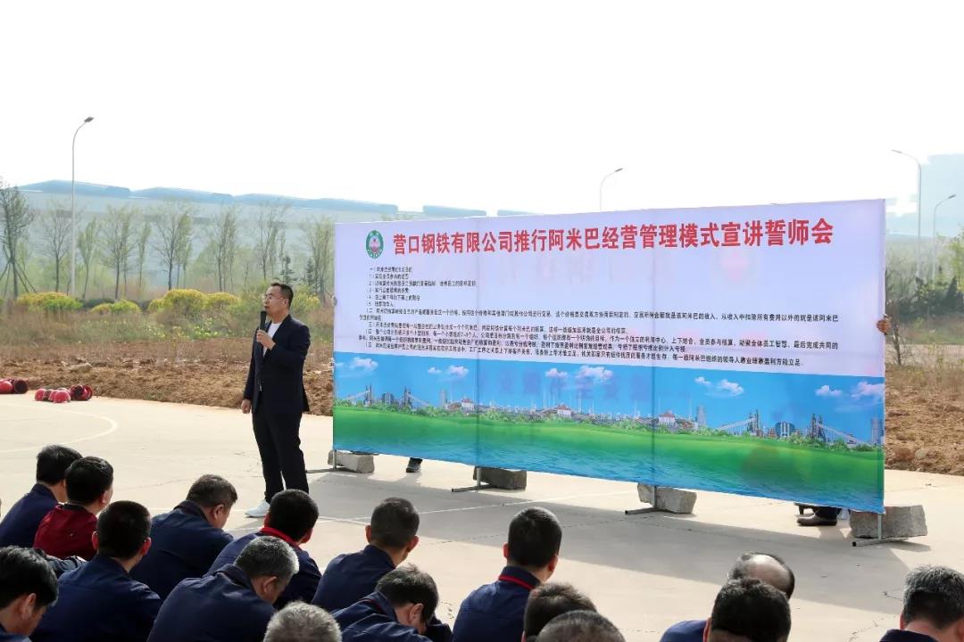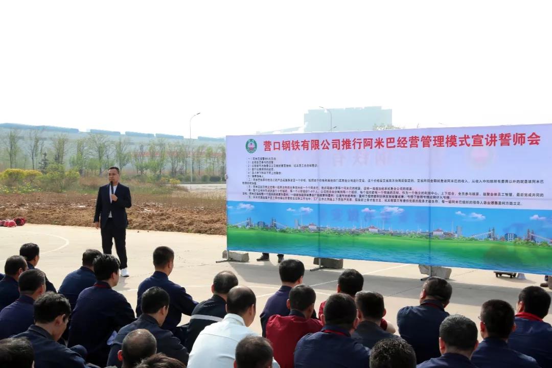 2019年5月3日下午,營鋼公司舉行推行阿米巴經(jīng)營管理模式宣講誓師大會,集團總裁孫朝英、集團副總經(jīng)理左文朝、營鋼公司副總經(jīng)理李朔等公司領(lǐng)導(dǎo),及各廠廠長、各部門領(lǐng)導(dǎo),阿米巴小組負責人等388人參加。