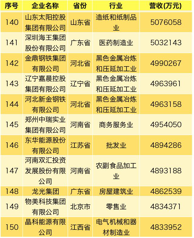 8月22日,2019中國民營企業(yè)500強峰會在青海省西寧市召開,峰會上發(fā)布了中國民營企業(yè)500強榜單,遼寧嘉晨控股集團有限公司榜單排名第143位, 2019中國民營企業(yè)制造業(yè)500強榜單排名第77位。