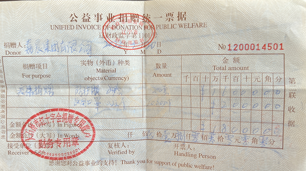 至此,2019年以來,嘉晨集團已累計向營口地區(qū)捐款及捐物共計2350余萬元,很好的履行了企業(yè)的社會責任。